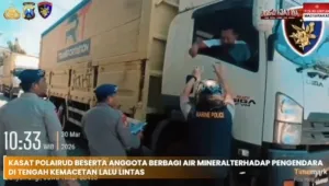 Di tengah situasi tersebut, aksi kemanusiaan dilakukan oleh jajaran Satuan Polisi Air dan Udara (Satpolairud) Polresta Banyuwangi. Dipimpin langsung oleh Kasat Polairud Kompol Muchammad Wahyudi, petugas turun ke lapangan membagikan air mineral kepada para pengendara yang terjebak kemacetan.