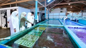 “Penanaman kita lakukan di laut. Untuk kebutuhan ekspor, biasanya kita panen antara usia tiga bulan hingga dua tahun, sesuai permintaan pasar,” ujar pemilik Sri Kandi Aquarium, I Ketut Sukandi, saat menerima kunjungan Bupati Banyuwangi Ipuk Fiestiandani, Senin (23/2/2026).