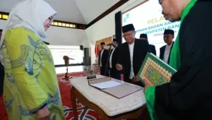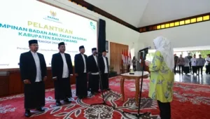 Banyuwangi1tv.com – Bupati Banyuwangi Ipuk Fiestiandani melantik pimpinan Badan Amil Zakat Nasional (Baznas) Kabupaten Banyuwangi masa bakti 2026–2031, Kamis (12/2/2026), di Pendopo Sabha Swagata Blambangan. Dwi Yanto resmi mendapatkan amanah sebagai Ketua Baznas Banyuwangi yang baru.