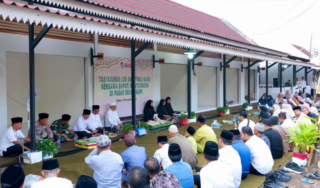 Banyuwangi1tv.com – Ungkapan syukur atas selesainya revitalisasi Pasar Rogojampi Banyuwangi, para pedagang pasar menggelar tasyakuran di lokasi, Rabu sore (18/12/2024). Bupati Ipuk Fiestiandani turut hadir dalam kenduri yang menandai beroperasinya kembali kios dan los baru pasar.
