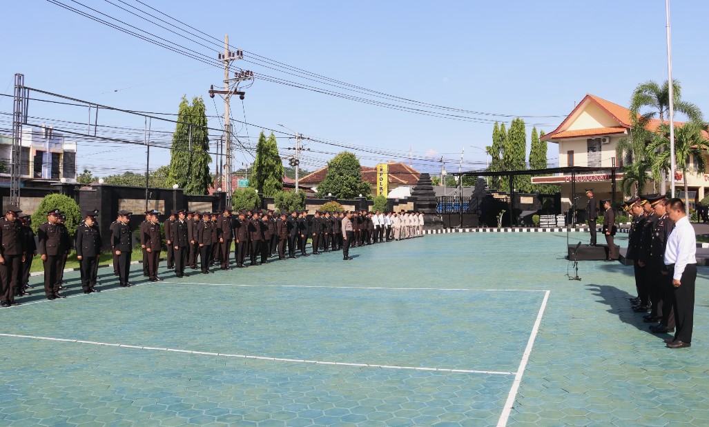 Selanjutnya Wakapolresta Banyuwangi membacakan Amanat Bapak Presiden Prabowo Subianto dalam upacara Bela Negara ke -76.